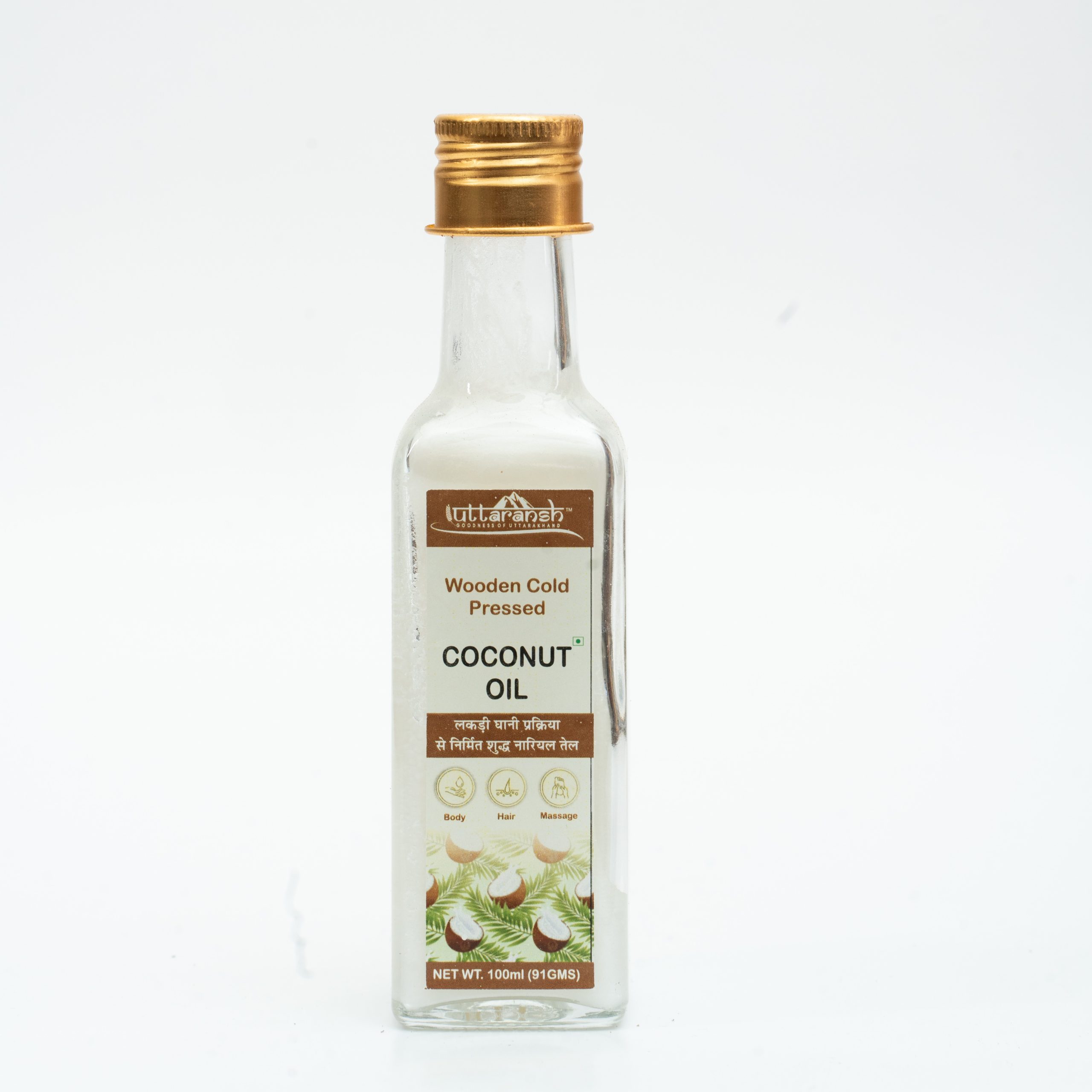 Cold-pressed Uttaransh Coconut Oil is rich in lauric acid and offers antibacterial, antifungal, and deeply moisturizing benefits for skin and hair therapy.