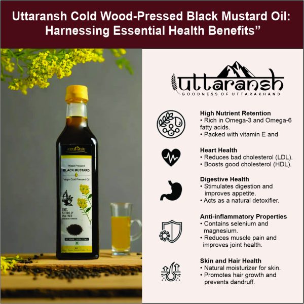Delve into the potential health benefits of Uttaransh Cold-pressed Black Mustard Oil: