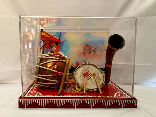 Meticulously shaped by Bageshwar’s Tamta artisans, this exquisite miniature set captures the essence of Uttarakhand’s sacred musical heritage.