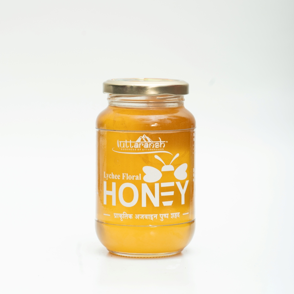 Immerse yourself in the delicate essence of Uttaransh Lychee Floral Honey, meticulously gathered from the flourishing Lychee Orchards nestled in the Ranipokhri region near Rishikesh & Rajpur in Dehradun.