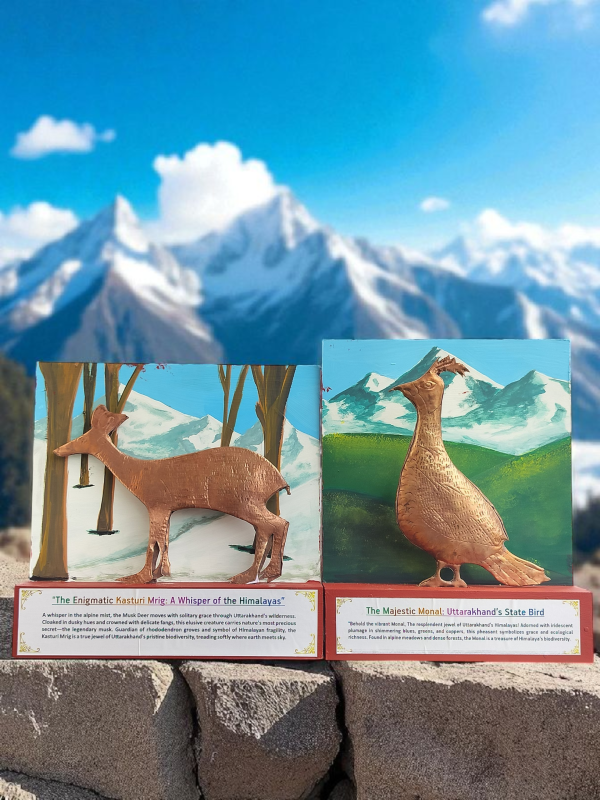 This miniature version of the Monal is expertly handcrafted from pure copper, with intricate detailing that brings out the elegance of its feathers and form. A perfect memento of Uttarakhand’s wildlife and natural heritage, this souvenir can serve as a stunning addition to your home décor, or a meaningful gift for nature lovers, bird enthusiasts, and travelers.