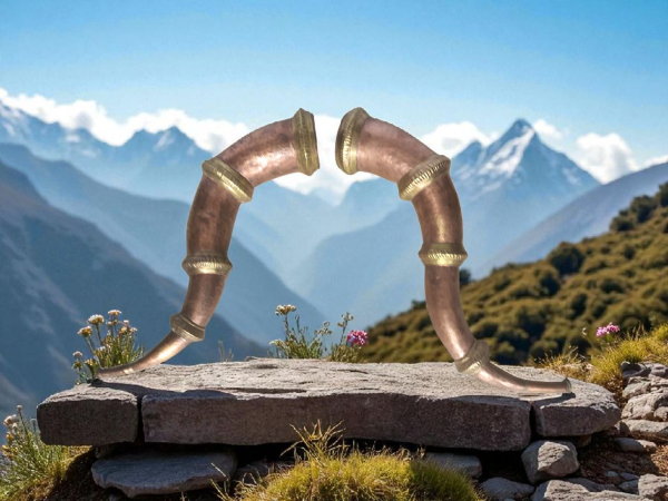 A majestic copper trumpet echoing through Himalayan valleys during sacred processions and village celebrations. Handcrafted by Tamta artisans using ancient metalwork traditions, this ceremonial horn carries the triumphant spirit of Devbhoomi’s festivals and rituals.