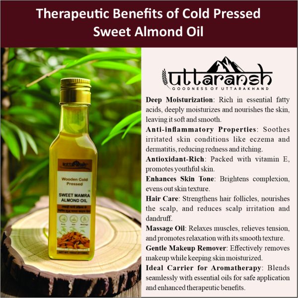 Mild and vitamin-rich, Uttaransh Sweet Almond Oil is perfect for delicate skin, baby massage, and anti-aging therapies.